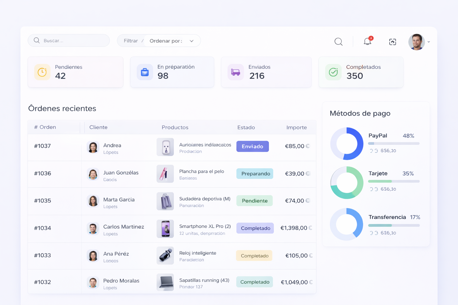 Visibilidad completa de la operativa: pedidos, plazos y cuellos de botella.