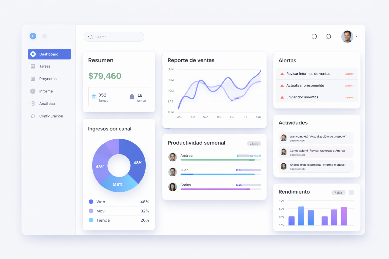 Aplicaciones y sistemas alineados con ventas, operaciones y administración: unifican la información en un solo sistema y reducen la dependencia de hojas de cálculo sueltas.